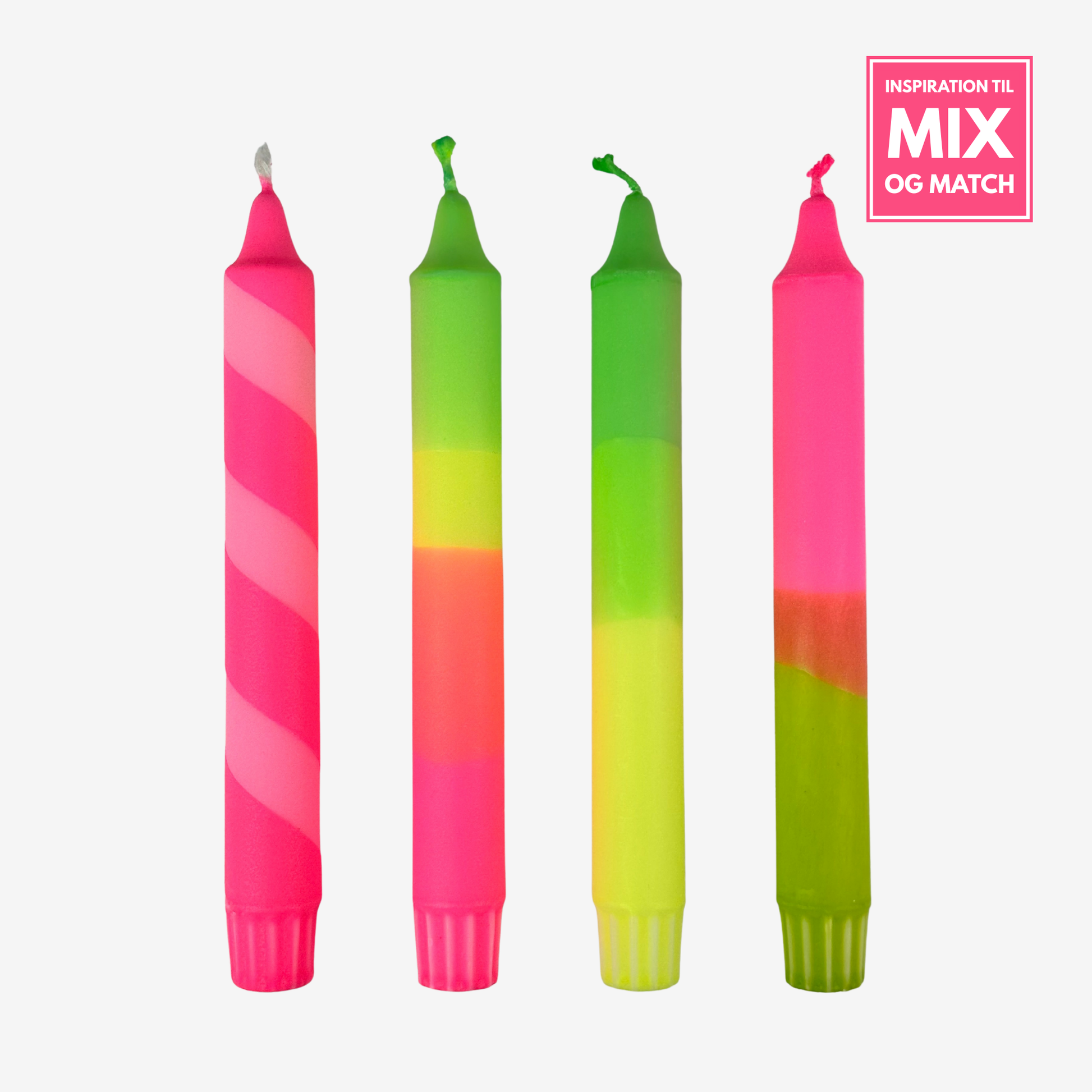 Grøn / Neongul / Orange / Pink stearinlys